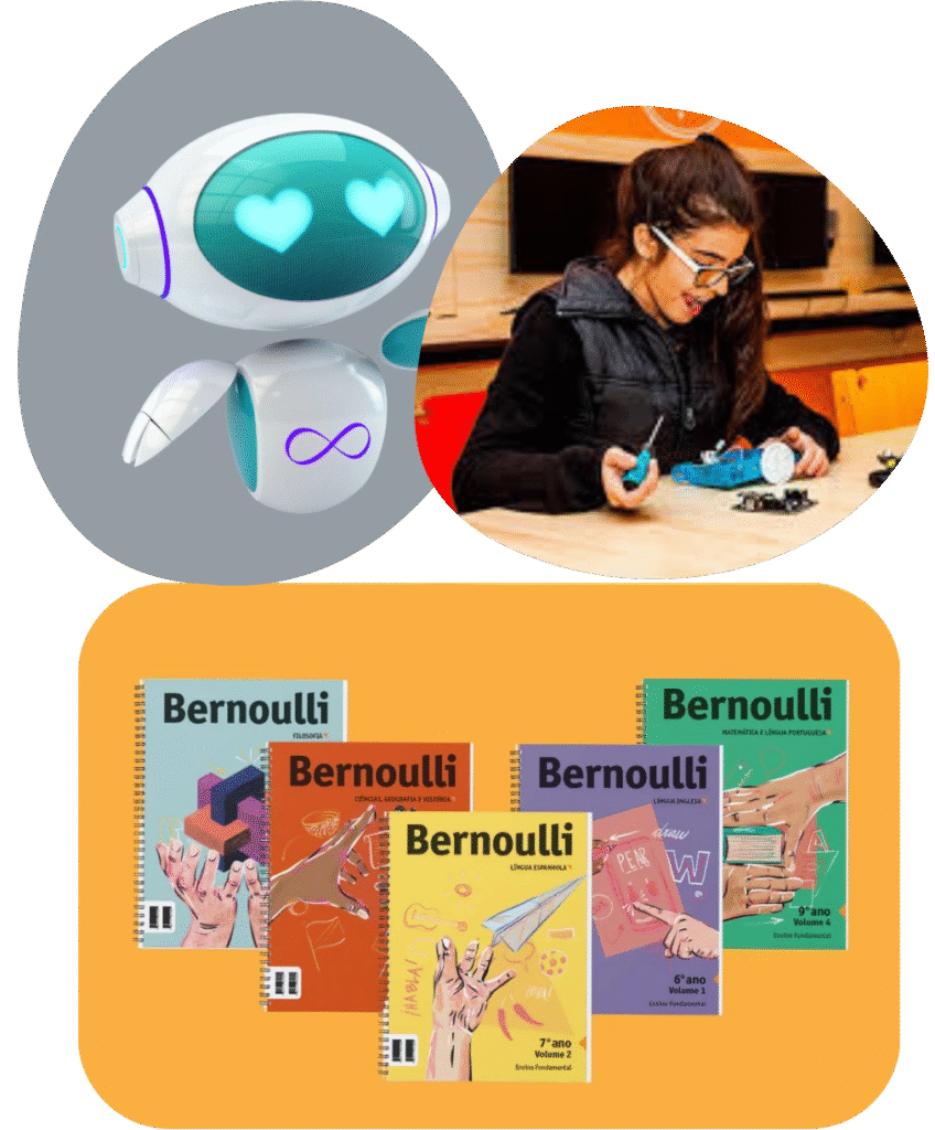 Robótica, pensamento computacional, plataformas digitais e atividades interativas que ampliam raciocínio, lógica e criatividade.